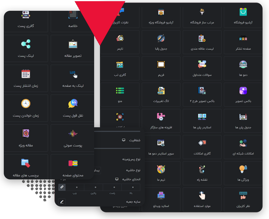 بیشترین تعداد ویجت | بالا ترین امکان شخصی سازی | طراحی بهینه | سرعت لود بالا | نصب آسان | پشتیبانی قوی | کد نویسی تمیز | اپدیت های دوره ای | استفاده از استایل های سراسری | دارا بودن پری لود | Ui اختصاصی | فونت محبوب ایران سنس و پینار |